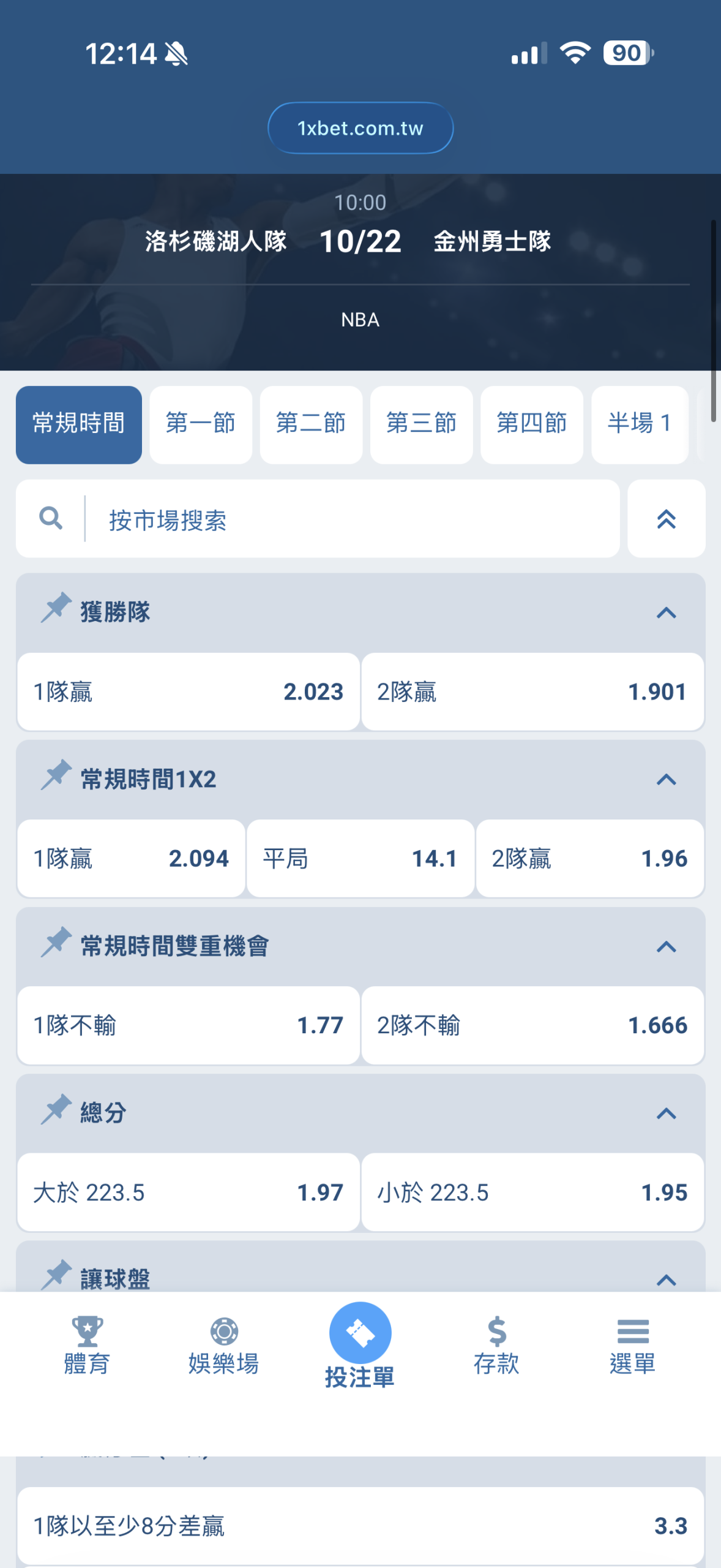 - 特殊主題:分區冠軍、射手王、季後賽系列賽市場等長期盤
