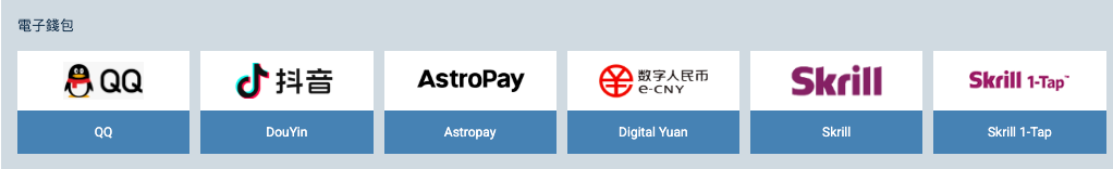 電子錢包:AstroPay、Skrill、Neteller、QQ、Douyin 等