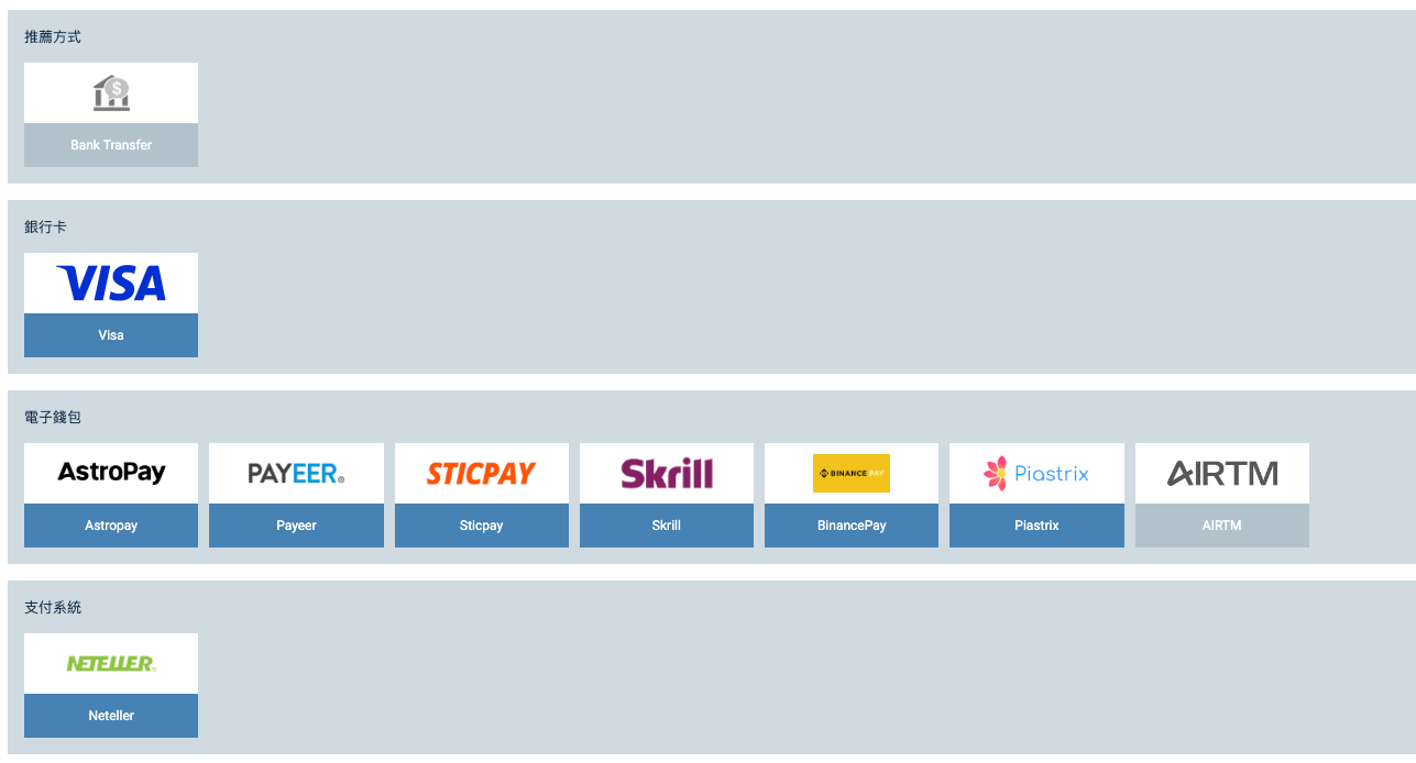 常見選項 :Skrill、Neteller、ecoPayz 等。