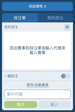 如果朋友有做 3 串 4 串的,只要把那串的「代碼」給你,系統就會自動把所有對應的比賽和注單帶出來,不用再一場一場講給朋友聽了。