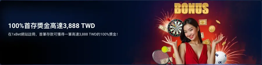 1xBet網站註冊時輸入促銷代碼[ 1x_1089830 ] ,首筆存款可獲得一筆高達3,888 TWD的100%獎金!