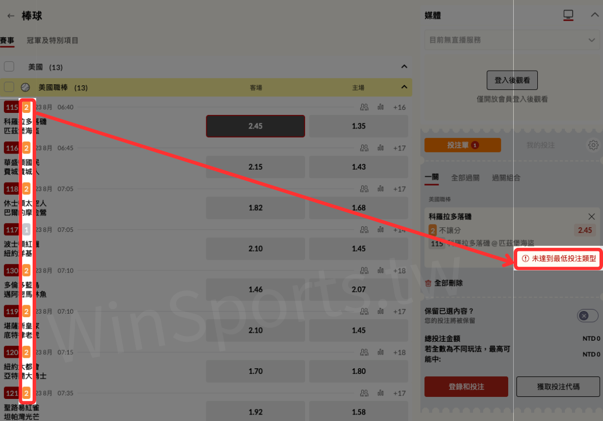 為什麼運彩下注時會顯示「未達到最低投注類型」?
