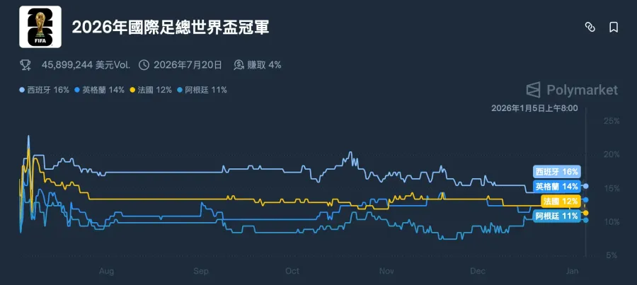 勝率賠率更新時間:2026.01.05(市場賠率已下調)